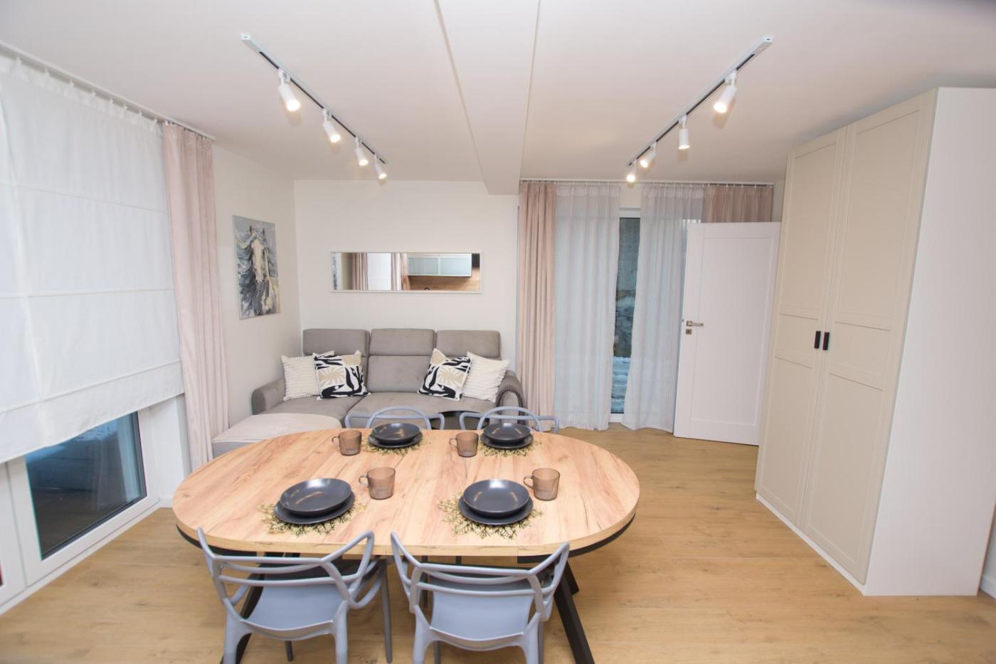 Apartament z 3 sypialniami. Guests will find a stovetop, a refrigerator, a dishwasher and kitchenware in the well-fitted kitchen. The apartment also features a barbecue. The spacious apartment offers a washing machine, a private entrance, a seating area as well as a terrace with garden views. The unit has 3 beds and 1 futon. Apartament - 6 osobowy. Powierzchnia pokoju ok.: 84 mkw.